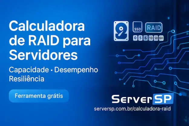 Calculadora de RAID para Servidores: por que a nossa é a mais completa Precisa decidir entre RAID 0, 1, 5, 6, 10, 50 ou 60 e quer entender, em segundos, o impacto em capacidade, desempenho e resiliência? Criamos a Calculadora de RAID da ServerSP, gratuita e aberta, que reúne tudo para planejar seu array com…